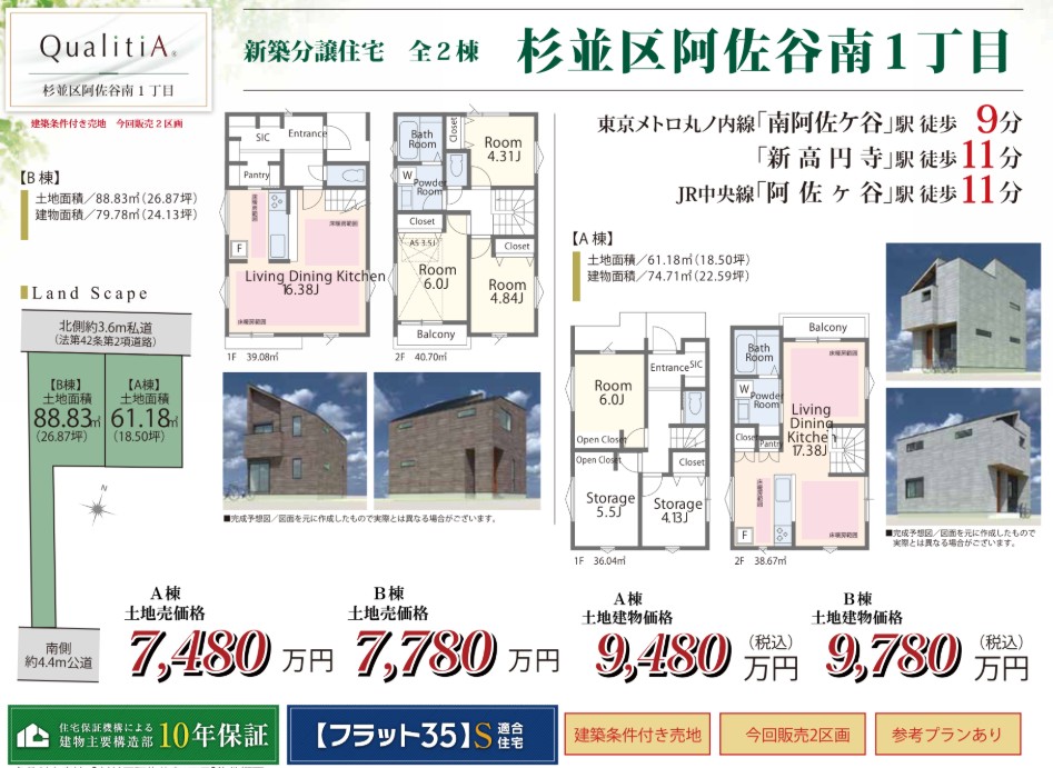 ◆面積:A区画/61.18㎡・B区画/88.83㎡